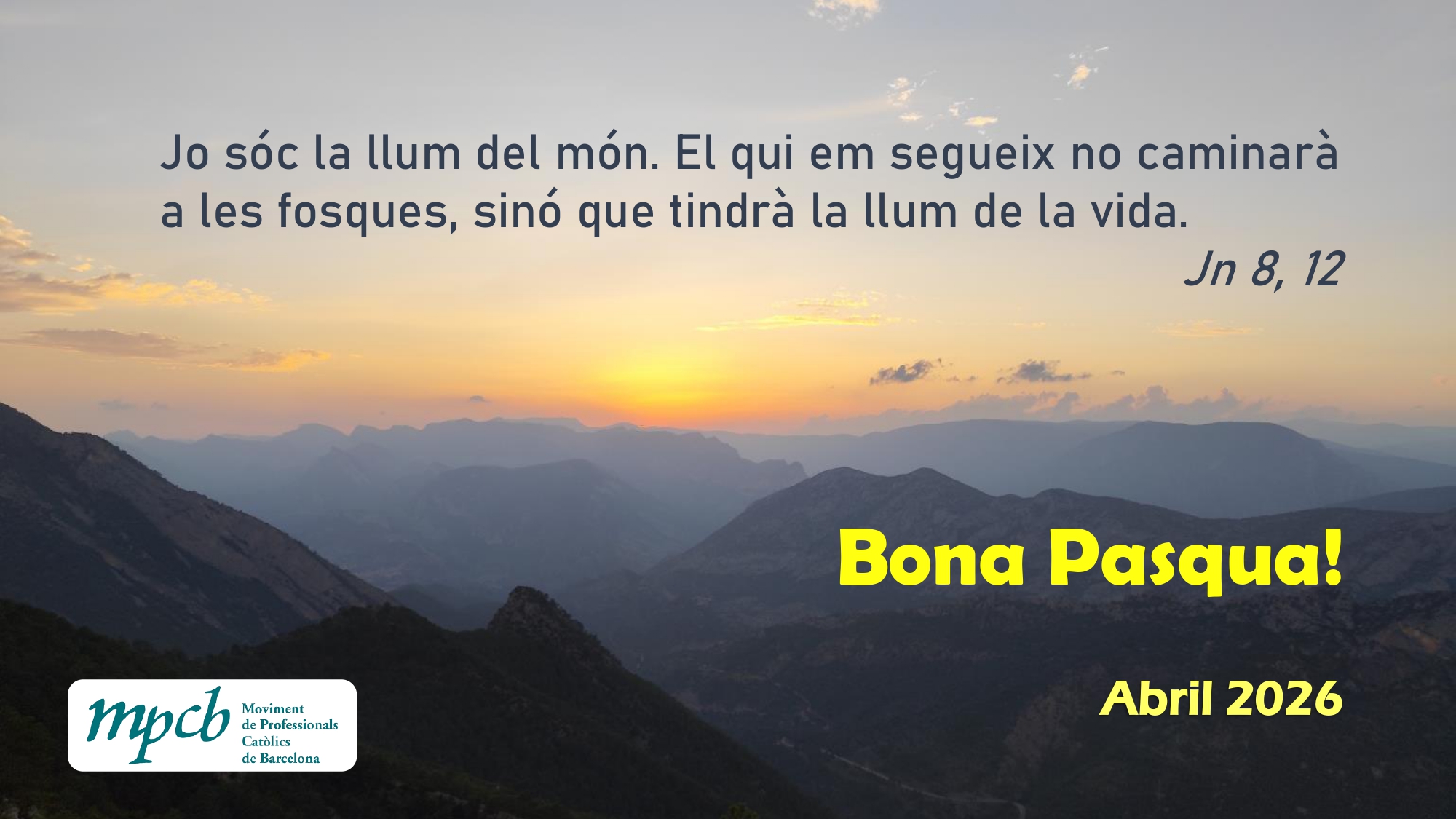 El Moviment de Professionals Catòlics de Barcelona (MPCB) és una associació de l’Església diocesana, fundada l’any 1990 per un conjunt de laics i laiques provinents majoritàriament del Moviment d’Universitaris i Estudiants Cristians. Formem part d’una Església que volem oberta, en diàleg amb el món i que viu la fe amb llibertat i respecte. Som fruit de l’impuls i la renovació que va significar el Concili Vaticà II.