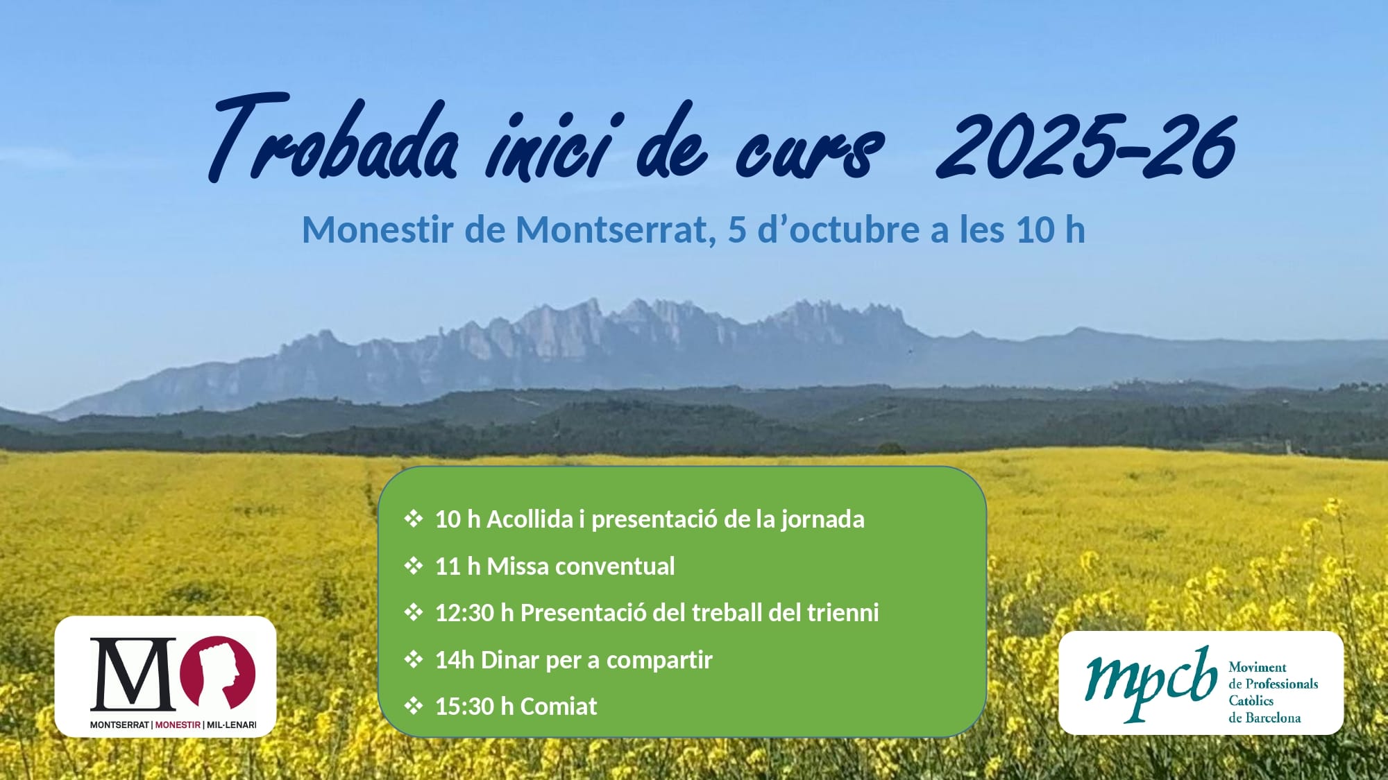 Trobada d’inici de curs, Diumenge 5 d’Octubre al Monestir de Montserrat.